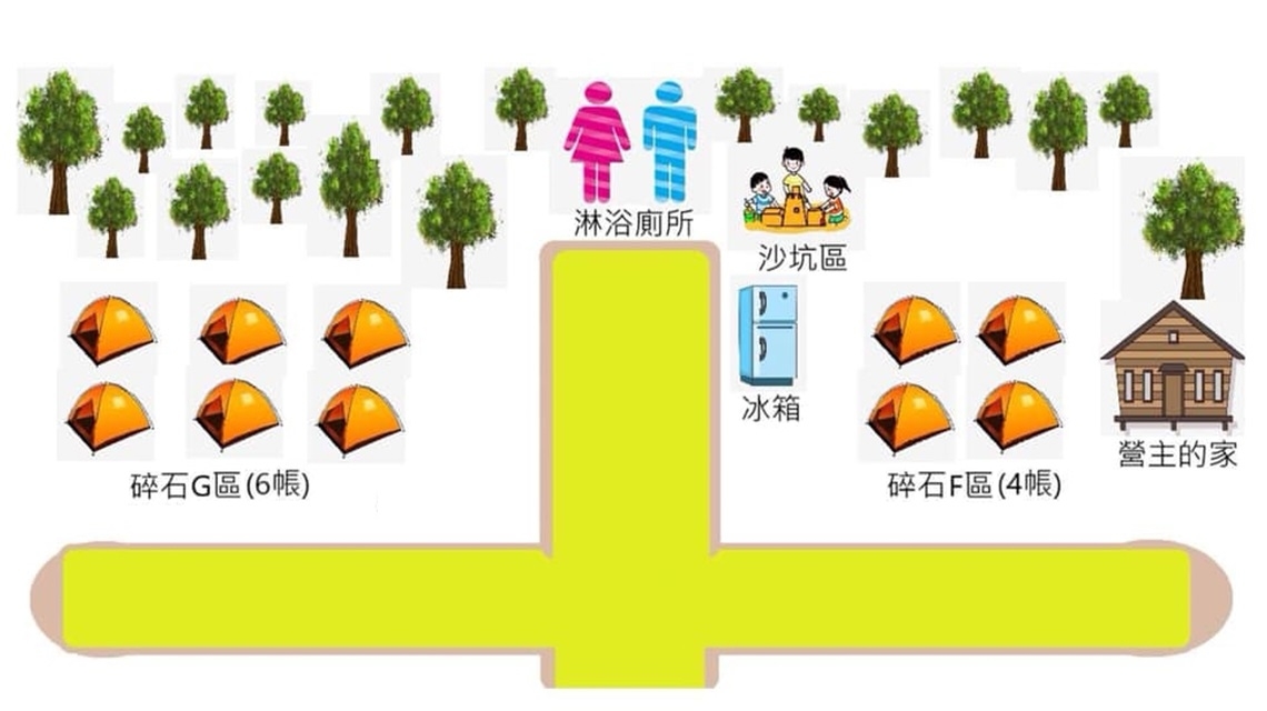 ※ 碎石F區:水槽2座、電箱2座(請備延長線5-10M),車停營位旁。